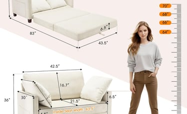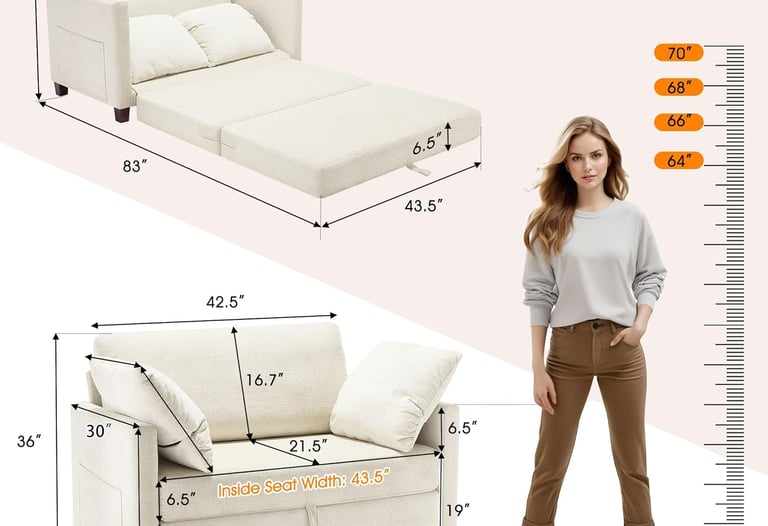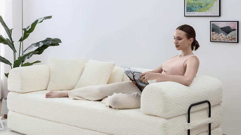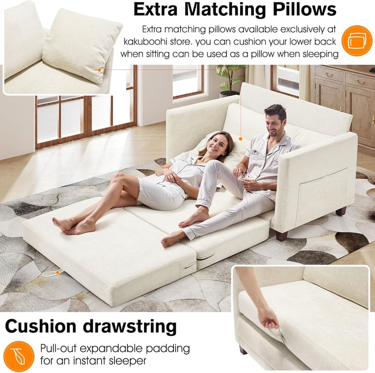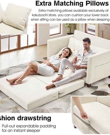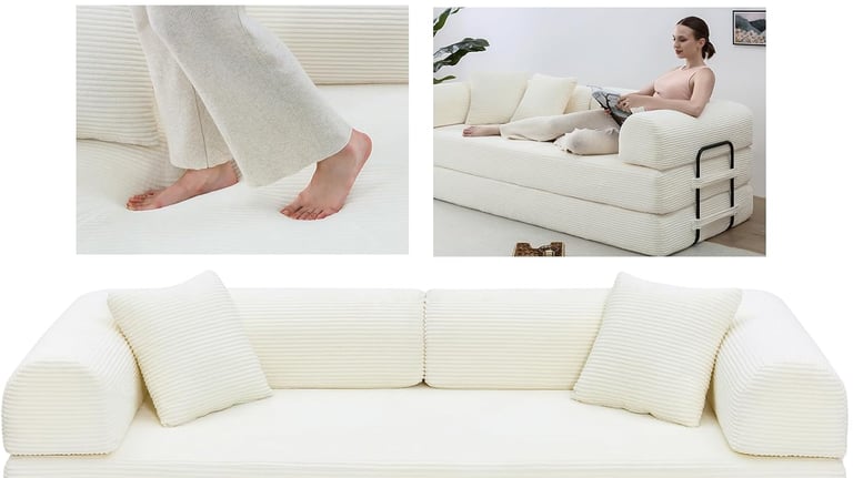 Convertible Sofa Bed,79'' Foldable Sleeper Lounge Modular Couch Comfort Compression Sofa Loveseat for Small Spaces Comfort for Apartment Bedroom (Corduroy Fabric, White)